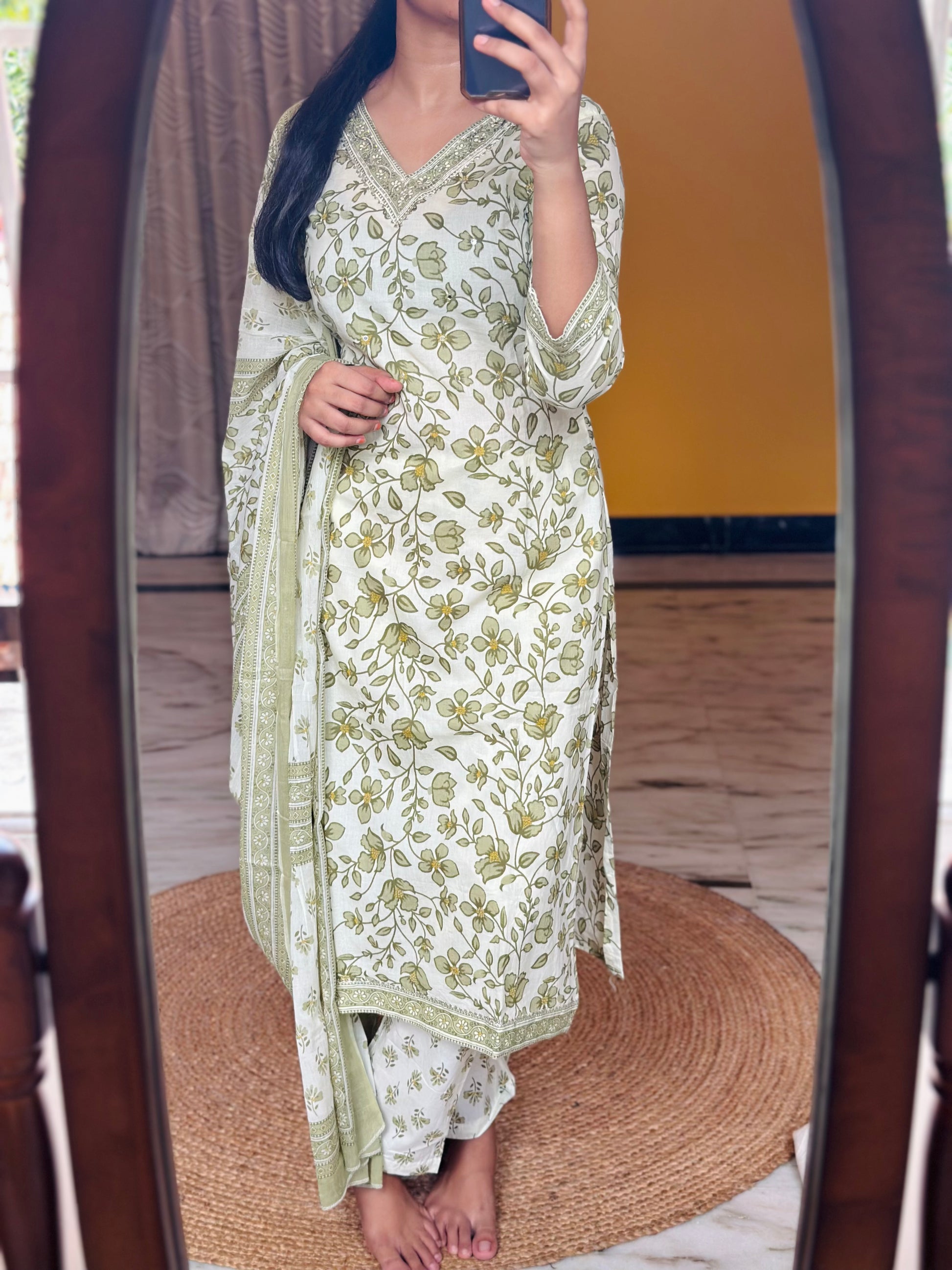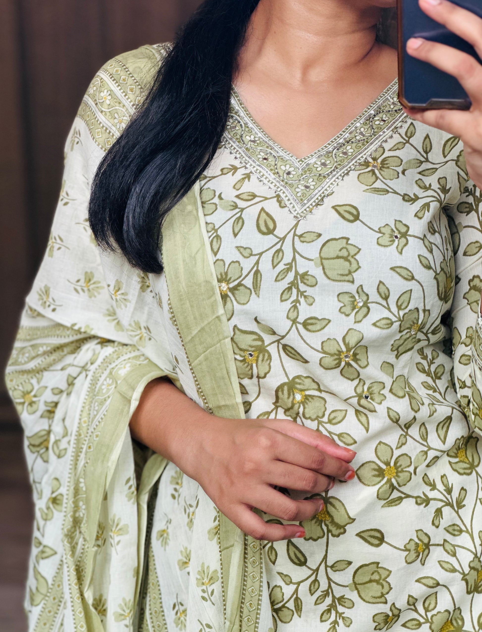 Neckline has embroidery mirror work